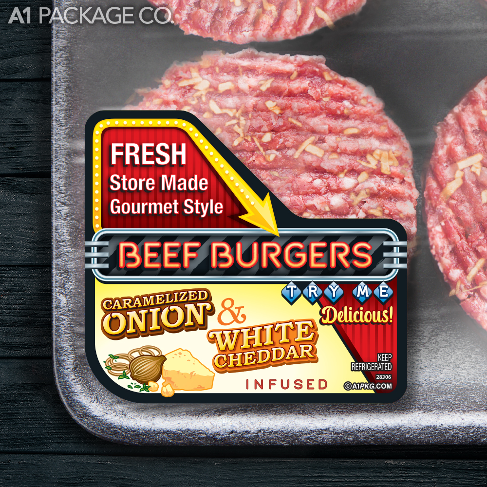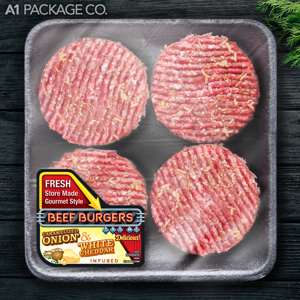 Make your beef burgers irresistible with our premium labels featuring vibrant, eye-catching designs and professional graphics. Crafted for maximum visual impact, these labels are designed to stand out on the shelf, capture customer attention, and boost sales. The bold, creative design ensures your product looks as premium as it tastes, reinforcing its high-quality nature and supporting a higher price point.Our labels convey freshness, superior quality, and value, building customer trust and encouraging repeat purchases. With easy application and a professional finish, these labels position your product as the top choice for discerning shoppers. Elevate your brand, increase customer satisfaction, and maximize your store’s impact with our premium beef burger labels.