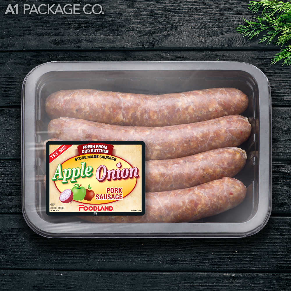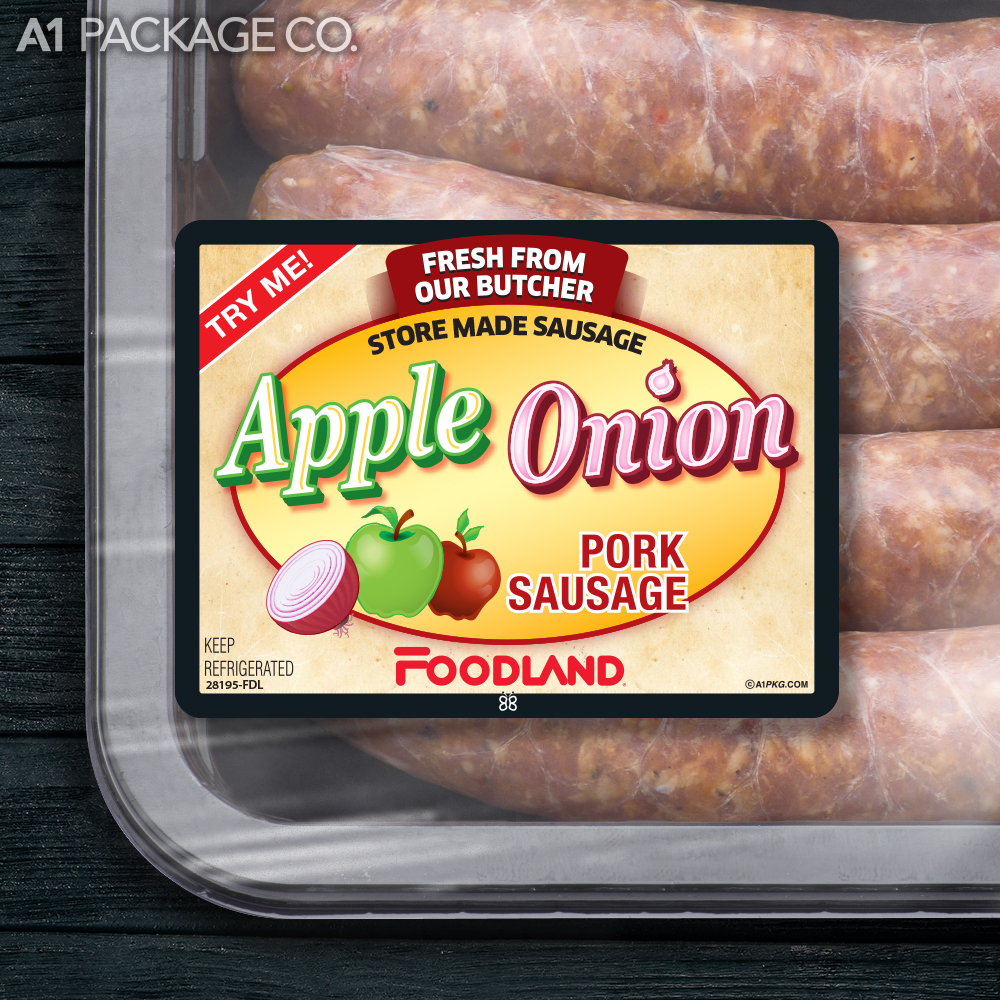 Give your store-made Foodland Apple Onion Pork Sausages a professional, brand-name look. These high-quality labels will enhance your product's presentation, attract attention, and drive sales.