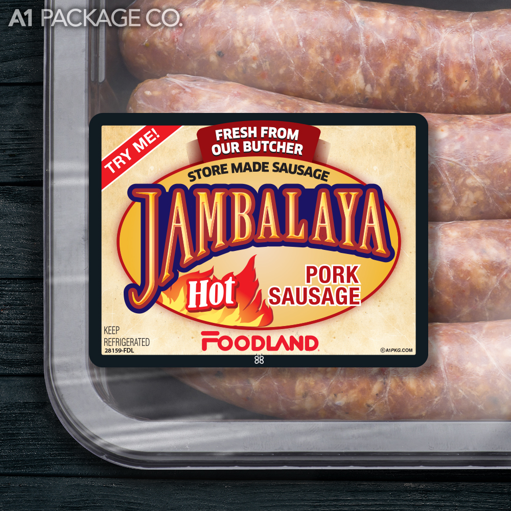 Give your store-made Foodland Hot Jambalaya Pork Sausages a professional, brand-name look. These high-quality labels will enhance your product's presentation, attract attention, and drive sales.