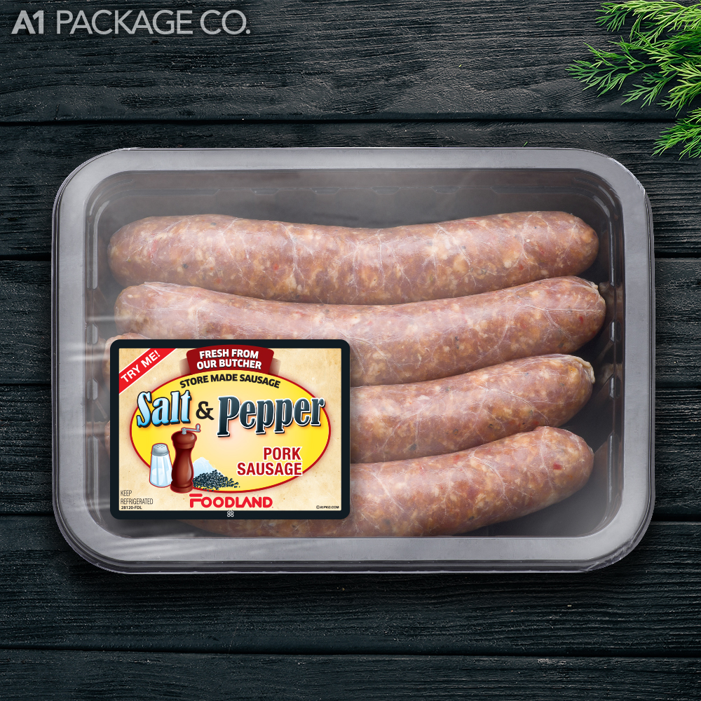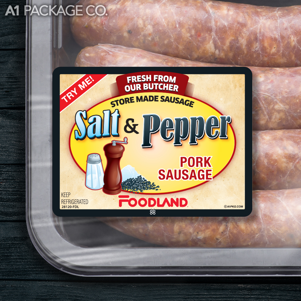 Give your store-made Foodland Salt & Pepper Pork Sausages a professional, brand-name look. These high-quality labels will enhance your product's presentation, attract attention, and drive sales.