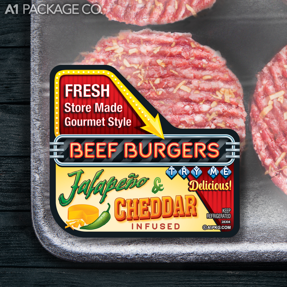 Make your beef burgers irresistible with our premium labels featuring vibrant, eye-catching designs and professional graphics. Crafted for maximum visual impact, these labels are designed to stand out on the shelf, capture customer attention, and boost sales. The bold, creative design ensures your product looks as premium as it tastes, reinforcing its high-quality nature and supporting a higher price point.Our labels convey freshness, superior quality, and value, building customer trust and encouraging repeat purchases. With easy application and a professional finish, these labels position your product as the top choice for discerning shoppers. Elevate your brand, increase customer satisfaction, and maximize your store’s impact with our premium beef burger labels.
