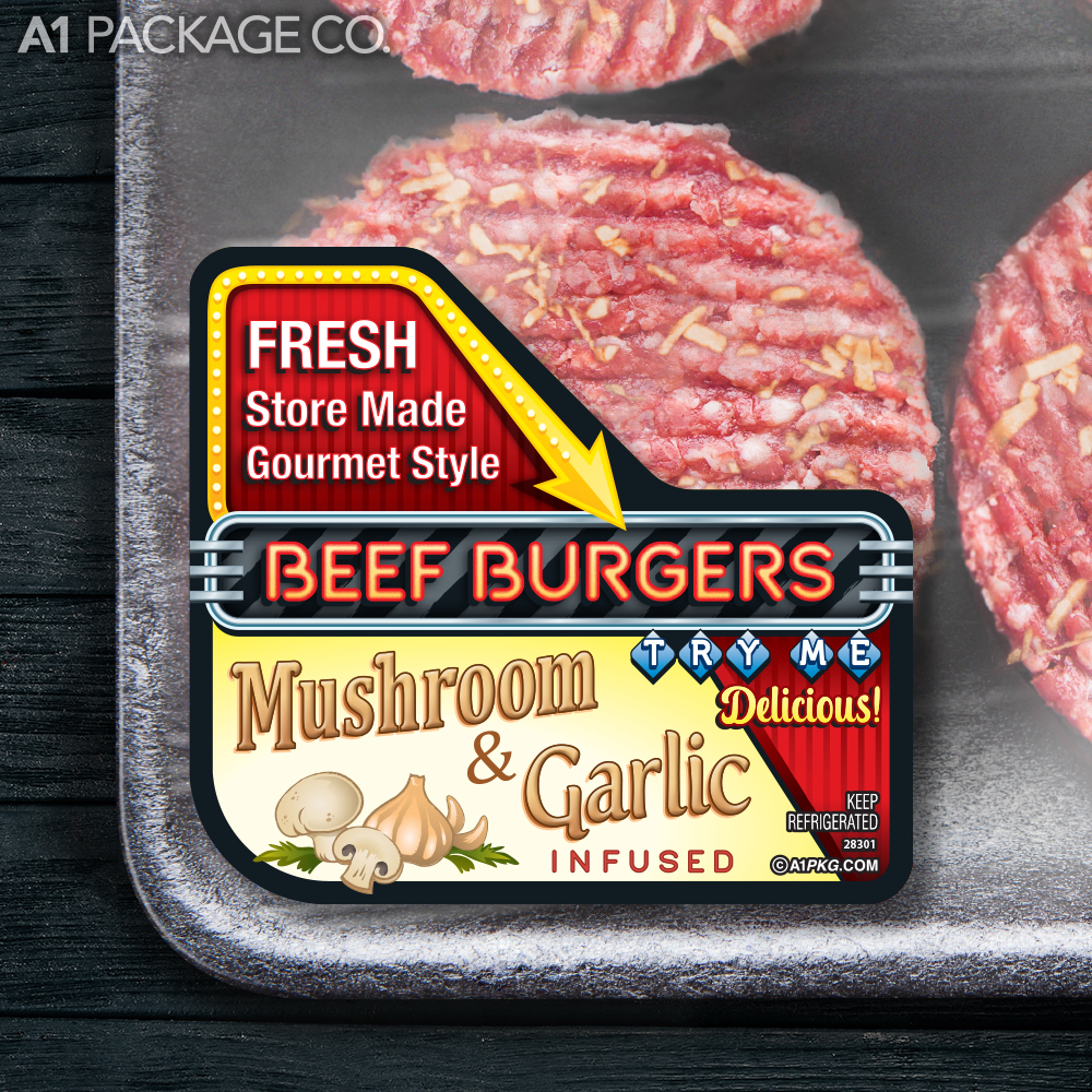 Make your beef burgers irresistible with our premium labels featuring vibrant, eye-catching designs and professional graphics. Crafted for maximum visual impact, these labels are designed to stand out on the shelf, capture customer attention, and boost sales. The bold, creative design ensures your product looks as premium as it tastes, reinforcing its high-quality nature and supporting a higher price point.Our labels convey freshness, superior quality, and value, building customer trust and encouraging repeat purchases. With easy application and a professional finish, these labels position your product as the top choice for discerning shoppers. Elevate your brand, increase customer satisfaction, and maximize your store’s impact with our premium beef burger labels.